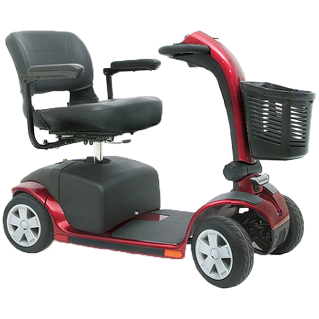 The Victory Sport 4-Wheel Electric Scooter’s biggest selling point is in its comfortable padded swivel seat, backrest and armrests. It is lightweight, equipped with anti-tip wheels and can accommodate a maximum of 300 lbs. - Drive Medical Phoenixhd4 Phoenix 4 Wheel Heavy Duty Scooter